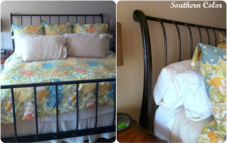 We are thinking of doing an iron bed for the room. Mostly because the headboard is going to cover a little of the window (the window is off centered on the wall and hangs 40 inches from the floor). We think an iron bed will look more airy and not cover the window in an awkward way.